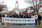 뉴스펀치 조평훈 기자 | 대구 중구는 지난 6일 동성로 일원에서 대구광역시 옥외광고협회(회장 이상식)와 함께 ‘불법 옥외광고물 근절을 위한 민·관 합동 캠페인’을 실시했다. 이번 캠페인은 연말연시 인파가 집중되는 동성로에 무분별하게 난립한 에어라이트(풍선형 간판)와 입간판 등 불법 옥외광고물을 정비하고, 시민의 보행 안전을 확보하기 위해 마련됐다. 이날 행사에는 류규하 중구청장과 직원, 협회 회원 등 40여 명이 참여해 어깨띠와 피켓을 활용한 거리 행진을 진행하며 상인들에게 자진 정비를 독려했다. 또한 시민들에게 홍보 물품을 배부하며 ‘안전하고 쾌적한 거리 만들기’에 동참해 줄 것을 호소했다. 특히 협회는 동성로 구 중앙파출소 앞에 ‘2025년 한국옥외광고대전’ 수상작을 전시해 시민들의 눈길을 끌었다. 창의적인 디자인이 돋보이는 입상작들이 전시돼, 시민들이 ‘아름다운 간판’의 효과와 가치를 직접 체감할 기회를 제공했다. 고영미 도시디자인과장은 “추운 날씨에도 쾌적한 도시미관 조성을 위해 적극 참여해 주신 옥외광고협회 회원분들께 감사드린다”며 “앞으로도 민·관이 지속해서 협