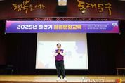 뉴스펀치 김완규 기자 | 서울 동대문구는 23일 구청 다목적강당에서 2025년 하반기 청렴문화교육을 진행했다고 밝혔다. 이번 교육에는 동대문구청, 동대문구시설관리공단, 동대문문화재단 직원 등 500여 명이 참여했다. 구는 문화공연을 접목한 교육 방식을 도입해 직원들이 보다 쉽고 흥미로운 방법으로 ‘청렴’을 접하고, 효과적으로 청렴 의식과 반부패 역량을 강화할 수 있도록 했다. 첫 순서로 열린 청렴 판소리 '신 별주부전'에서는 하급 관료인 별주부의 이야기를 새롭게 각색해 청렴의 가치를 되새기게 했다. 참석자들은 “처음에는 생소했는데, 판소리를 통해 듣는 청렴 이야기가 신선하고 인상 깊었다.”라고 소감을 전했다. 이어진 '청렴 시네마'에서는 청렴교육 전문 강사가 부정청탁금지법, 이해충돌방지법, 공무원행동강령을 영화 장면과 연결해 알기 쉽게 설명하여 직원들의 공감을 이끌어냈다. 마지막으로 청렴 연극 '청렴의 갈림길'은 실제 업무에서 마주할 수 있는 상황을 극화해 어떤 선택이 올바른 선택인지 고민하게 했다. 직원들은 연극 속 상황에 몰입하며 일상 속에서의 청렴 실천을 다시금 다짐했다. 이필형