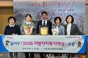 뉴스펀치 조평훈 기자 | 대구 달서구가 한국사회복지사협회가 주관하는‘2026 지방자치복지대상’에서 기초자치단체 부문 대상을 수상하며 복지 선도도시로서의 위상을 다시 한번 입증했다. 이번 시상은 지난 30일 서울 국회박물관에서 열린‘제20회 사회복지사의 날’ 기념식에서 진행됐으며, 사회복지사 처우개선과 지역복지 발전에 기여한 지방자치단체의 정책 성과를 종합적으로 평가해 수여됐다. 달서구는 사회복지 종사자 처우개선을 위한 조례를 선제적으로 제정하고, 세 차례의 실태조사를 실시하는 등 데이터 기반 정책을 추진해 온 점에서 높은 평가를 받았다. 또한 2026년 전체 예산 1조 1,958억 원 중 73.3%에 해당하는 8,678억 원을 사회복지 분야에 편성하며 복지 사각지대 해소와 종사자 지원에 지속적으로 투자해 왔다. 이와 함께 보건복지부 인건비 가이드라인 준수, 상해보험료 및 보수교육비 지원, 장기근속 휴가제 도입 등 근무환경 개선 정책을 추진해 현장 만족도를 높였다. 아울러 통합돌봄 전담부서 신설, 노인종합복지관 확충, 주거복지센터 및 아이꿈센터 운영 등 조직과 인프라를 확대해 서비스의