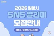 뉴스펀치 김길룡 기자 | 경남 밀양시는 오는 12일 1일까지 시의 정책, 문화·관광, 축제·행사, 맛집 등 다양한 분야를 취재하고 홍보할 ‘2026년 사회관계망서비스(SNS) 알리미’를 모집한다고 24일 밝혔다. 모집 분야는 블로그 10명, 유튜브 5명, 인스타그램 5명 등 총 20명이다. 2026년에는 인스타그램 부문을 새롭게 신설해 더 다양한 플랫폼에서 밀양의 매력을 알리고자 한다. 선발된 SNS 알리미는 내년 연말까지 밀양시의 숨겨진 볼거리, 즐길 거리, 먹거리 등을 발굴해 품질 높은 콘텐츠를 제작하고, 이를 시 공식 사회관계망서비스 채널에 공유하게 된다. 활동자에게는 매월 콘텐츠 제작에 따른 소정의 원고료가 지급되며, 시가 주최하는 행사에 우선 참여하고 취재할 수 있는 기회 등 다양한 혜택도 주어진다. 지원 방법은 밀양시 대표 누리집의 고시·공고란에서 지원서를 내려받아 작성 후 이메일로 제출하면 된다. 모집 관련 자세한 사항은 밀양시 대표 누리집 또는 공식 사회관계망서비스에서 확인할 수 있다. SNS 알리미 선정 결과는 12월 12일 밀양시 대표 누리집