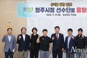 뉴스펀치 김길룡 기자 | 이범석 청주시장은 29일 임시청사 직지실에서 제106회 전국체육대회 출전을 앞두고 있는 직장운동경기부 선수단 감독들을 만나 격려했다. 오는 10월 17일부터 23일까지 부산광역시 아시아드주경기장을 포함한 82개 경기장에서 개최되는 전국체육대회에, 청주시 선수단은 총 328명이 27개 종목에 출전한다. 이 중 청주시청 직장운동경기부는 8개 부문*에 50명의 선수가 출전해 청주시의 위상을 드높일 예정이다. 감독들로부터 출전보고를 받은 이범석 시장은 “선수 여러분의 열정과 땀은 이미 청주시의 자랑”이라며 “이번 전국체전에서도 자신감을 갖고 그동안 갈고닦은 실력을 마음껏 펼쳐주시길 바란다. 청주시민들과 함께 여러분을 응원하겠다”고 따뜻한 격려와 응원의 메시지를 전했다.