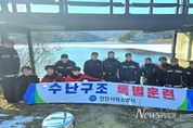 뉴스펀치 이현승 기자 | 천안서북소방서는 지난 23일 천안시 성성호수공원에서 겨울철 수난사고 대응력 강화를 위한 “2026년 동계 수난사고 대비 특별구조훈련”을 실시했다고 전했다. 이번 훈련은 전형재 119구조구급센터장의 주도하에 구조대원 21명이 영하의 기온에서 낮은 수온과 얼음물 등 겨울철 특수한 환경에서의 인명구조 기술 습득 및 대응 능력 강화를 위해 실시했으며, 재난대응과장이 참석하여 훈련대원에 대한 격려의 시간을 함께 가졌다. 주요 훈련내용으로는 △ 안전사고 방지 교육 △ 수난구조장비 활용 수중 인명탐색기법 훈련 △ 호흡장비 동결 등 비상 시 긴급 대처능력 강화 △ 요구조자 응급처치 훈련 등이다. 최길재 소방서장은 “겨울철 수난사고는 저체온증 등 위험이 더 높은 만큼 지속적인 실전 훈련을 통해 시민의 안전 확보에 최선을 다하겠다.”며 “시민분들께서도 안전한 겨울을 보낼 수 있도록 계곡, 강 등에서 안전사고가 발생하지 않도록 각별한 주의를 기울여주길 바란다.”고 전했다.
