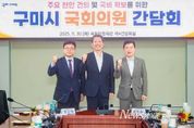 뉴스펀치 김길룡 기자 | 구미시는 9월 30일 국회를 방문해 구자근, 강명구 지역구 국회의원과 간담회를 열고 지역 주요 현안과 국비 확보 전략을 논의했다. 이날 간담회에는 김장호 시장을 비롯해 구미시 주요 간부 공무원 등 30여 명이 참석했다. 시는 현안 사업 추진 상황과 정부 예산 동향을 공유하며 국회 차원의 전략적 지원 방안을 모색했다. 주요 현안사업으로는 △구미국가산업단지 1~3단지 연결교량 신설 △구미~신공항 철도건설 △대한민국역사박물관(구미산업화역사관) 건립 △새마을운동중앙회 및 연수원 유치 △'5극 3특'국가균형성장 전략 대응 △한국은행 구미지역본부 유치 △'방위산업 소재ㆍ부품ㆍ장비 특화단지'유치 △국가 푸드테크 클러스터 조성 등이 논의됐다. 주요 국비사업으로 △구미시 제조창업 인큐베이팅 센터 구축 △AX 실증산단 구축 사업 △지역 주력 중소기업형 인공지능 데이터 스페이스 구축 △차세대 디스플레이 핵심부품ㆍ소재 기술개발 △반도체 장비 챔버용 소재부품 제조 및 검증 테스트베드 구축 △수요확대형 배터리 테스트베드 구축 △구미 산동 국민체육센터 조성 △푸드테크 연구지원센터 구축 △펫테크 산업화 지원센터 구축 △4단지처