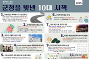 뉴스펀치 김길룡 기자 | 영광군이 12월 18일 올해 군정을 빛낸 10대 우수 시책을 최종 선정했다고 밝혔다. 이번 선정은 총 52건의 후보 시책을 대상으로 진행된 1차 군정평가와 2차 주민·공무원 설문평가를 거쳐 이루어졌으며, 주민 체감도와 정책 성과, 지역 발전 기여도를 종합적으로 평가한 결과다. 평가는 12월 2일부터 15일까지 2단계로 진행됐다. 1차 군정평가에서는 실무반 26명이 후보 시책 52건을 심사해 상위 20건을 선정했고, 2차 평가에서는 주민과 공무원이 함께 참여하는 설문조사를 통해 최종 10건을 선정했다. 이번 10대 우수시책 중‘영광 불갑산 하이패스 IC 건설(상행선)’이 최고 점수를 받으며, 지역 교통 인프라 강화와 군민 이동 편의 증진에서 큰 성과를 거둔 것으로 평가됐다. 이어 우수시책에는 ▲민생경제회복지원금 지원 ▲영광군 공설추모공원 개원이 포함됐으며, 장려시책으로는 ▲청년과 육아가 공존하는 상생 플랫폼-영광청년육아나눔터 ▲지방세 체납액 카톡 알림 징수효과가 이름을 올렸다. 나머지 5건은 ▲국민행복민원실 선정 ▲백수 해안노을 관광지 지정 ▲영광군