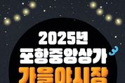 뉴스펀치 김길룡 기자 | 포항시는 오는 10월 31일부터 11월 2일까지 3일간 중앙상가 거리 일원에서 ‘2025 포항 중앙상가 가을 야시장’을 개최한다. 지난 여름 7주간 운영된 ‘2025 중앙상가 여름 야시장’의 시민들의 뜨거운 호응 속 지속적 요청에 힘입어, 중앙상가 일원 도시재생사업과 연계를 위한 가을맞이 특별 야시장 운영이 결정됐다. 이번 가을 야시장은 오후 5시부터 밤 10시까지 푸드트럭·먹거리 부스·플리마켓·체험 공간 등 20여 개 부스가 운영된다. 특히 매일 오후 7시부터 2시간 동안 지역뮤지션 버스킹 공연이 펼쳐져 도심 속 가을 축제 분위기를 한껏 끌어올리며 가을밤 정취를 더할 예정이다. 중앙상가 일원에서는 한동대학교 주관의 ‘다시 육거리 프로젝트(10.27.~11.9.)’가 동시에 진행돼 빈 점포를 전시·체험 공간으로 재활용하는 도시문화 혁신 모델이 선보인다. 두 행사는 시너지 효과를 내며 도심 상권에 활기를 불어넣고 청년, 상인이 함께 참여할 수 있는 문화와 상업이 어우러진 복합 도심형 축제의 장으로 주목받고 있다. 포항시 관계자는 “이번 가을 야시장