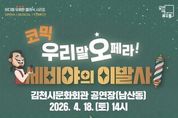 뉴스펀치 박세훈 기자 | 김천시 문화예술회관은 온 가족이 함께 웃으며 즐길 수 있는 우리말 코믹 오페라 '세비야의 이발사'를 오는 4월 18일, 김천시문화회관(남산동)에서 개최한다. 이번 공연은 예술지원센터의 ‘2026년 공연예술 지역유통 지원사업’으로 선정되어 국비를 지원받아 개최되며, 전석 1만 원이라는 저렴한 가격으로 제공된다. 우리말 코믹 오페라 '세비야의 이발사'는 원곡 전곡을 재치 있는 한국어로 번안하여 누구나 이해할 수 있는 가사로 재해석한 것이 특징이다. 여기에 슬랩스틱 코미디와 패러디, 현실감 있는 대사들을 더해 관객들의 몰입도를 높이고 오페라에 대한 심리적 거리감을 크게 낮췄다. 예매는 4월 3일 14시부터 티켓링크 또는 김천시문화예술회관 누리집에서 가능하며, 김천시민 30%, 김천시 다자녀가정 40% 할인 등을 받을 수 있다. 자세한 사항은 김천시 문화예술회관 누리집 공지사항을 확인하거나, 문화예술회관 사무실로 문의하면 된다.
