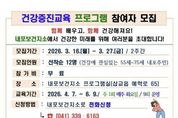뉴스펀치 이현승 기자 | 예산군 내포보건지소는 지역 주민의 건강증진과 활기찬 노후생활 지원을 위해 ‘2026년 건강증진교육 프로그램’ 참여자 12명을 오는 27일까지 선착순 모집한다. 이번 프로그램은 주민 참여형 통합 건강증진 교육으로 건강에 관심 있는 55세부터 75세까지 내포신도시 거주 주민이면 누구나 신청할 수 있으며 참가비는 전액 무료다. 교육은 4월 7일부터 6월 9일까지 매주 화요일 주 1회씩 총 9회 과정으로 내포보건지소 프로그램실에서 진행되며, 주요 내용은 △두뇌자극 음악활동 △한방비누 및 천연 건강용품 만들기 △근력 강화 및 균형감각 운동 △오감 자극 소근육 활동 △생명지킴이 자살예방 교육 △만성질환 예방을 위한 영양관리 등으로 신체 건강과 정신 건강을 함께 관리할 수 있도록 운영된다. 내포보건지소 관계자는 “이번 건강증진교육 프로그램이 주민들의 신체 건강뿐 아니라 정서적 활력과 사회적 교류를 높이는 계기가 되길 바란다”며 “앞으로도 지역 주민의 건강 수준 향상을 위해 다양한 건강증진 프로그램을 지속적으로 운영하겠다”고 말했다.