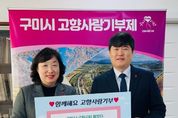 뉴스펀치 김길룡 기자 | 구미시와 군위군은 지난 4일 지역 상생과 나눔문화를 실천하기 위해 고향사랑기부금 400만 원을 서로 기탁했다. 두 지자체는 이를 계기로 행정 협력과 교류를 더욱 강화할 방침이다. 구미시 사회복지국은 시민 복지정책을 총괄하며 촘촘한 복지 안전망 구축을 위한 다양한 시책을 추진하고 있다. 군위군 공무원들 역시 주민 복리 증진과 지역 발전을 위해 현장에서 지속적인 노력을 기울이고 있다. 정성현 구미시 부시장은 “연말을 맞아 공직자들의 자발적인 기부가 나눔문화 확산의 좋은 사례가 되고 있다”며 “고향사랑기부제를 통해 마련된 재원이 지역 복지 향상으로 이어지길 바란다”고 말했다. 한편 구미~군위 간 고속도로가 개통되면 두 지역은 20분 생활권으로 가까워질 전망이다. 시는 이를 통해 고향사랑기부제 활성화뿐 아니라 다양한 분야에서 상생협력이 지속될 것으로 기대하고 있다.