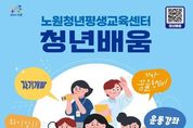 뉴스펀치 김완규 기자 | 서울 노원구가 청년들을 위한 평생학습센터 '청년 배움'을 개소한다고 밝혔다. 구는 그간 청년들의 평생학습 기회 확대를 위해 한국성서대학교와 협력해 ‘다 담다’ 프로젝트를 운영해 왔다. 이를 통해 쌓은 경험과 성과를 바탕으로, 보다 안정적이고 지속적인 교육 제공을 위해 ‘청년 배움’을 개소하고, 구 직영으로 운영한다. ‘청년 배움’은 지난 8월 시범운영을 시작해 10월 1일 정식 개관했다. 운영 시간은 평일 오전 10시부터 오후 8시까지, 토요일은 오전 10시부터 오후 5시까지이며, 일요일과 공휴일은 휴관한다. 시범운영 기간동안 ‘청년 맞춤 발성훈련 클래스’, ‘바른자세 만들기 SNPE’, ‘몸과 마음 힐링 스트레칭’ 등 프로그램이 운영됐으며, 모든 강좌가 접수 당일 마감되는 등 높은 호응을 얻었다. 정식 개관 후 프로그램은 취업 및 실생활에 밀접하게 연관된 4개 영역 27개 과정으로 구성됐다. ‘청년 실전 up’ 영역에서는 ▲커뮤니케이션 및 면접 스피치 ▲브이로그 콘텐츠 기획 ▲소비 습관 진단 ▲브랜딩 스토리 등 7개 실전형 프로그램이 운영된다. ‘청년 마음 u