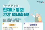 뉴스펀치 김완규 기자 | 양천구는 제29회 노인의 날(10월 2일)을 앞두고 오는 25, 26일 양일간 지역 어르신들을 위한 대규모 화합의 장 ‘언제나 청춘! 건강 백세축제’를 개최한다고 21일 밝혔다. 구는 매년 노인의 날을 기념해 어르신들의 노고에 감사를 전하고 일상에 활기를 더하는 행사를 추진하고 있다. 특히 올해는 어르신들이 직접 참여하는 사전 프로그램 등 볼거리·즐길거리가 어우러진 종합 축제로 기획됐다. 사전 행사로는 25일 오후 2시부터 9개 스마트경로당이 동시에 참여하는 실시간 노래 경연대회 ‘ON Air 스마트경로당 가왕전’이 열린다. 스마트경로당은 IoT(사물인터넷) 기반 건강관리시스템과 스마트TV·화상플랫폼 등 디지털 장비를 갖춘 어르신 맞춤 복지공간으로, 이번 축제에선 어르신들이 노래 실력을 뽐내는 무대로 변신한다. 목동시니어스마트교육센터 스튜디오를 중심으로 스마트경로당 9개소를 화상 연결해 실시간 생중계 형식으로 진행될 예정이다. 26일 오후 2시 양천문화회관 대극장에서 열리는 본행사는 지역 어르신 1천여 명을 초청해 기념식과 축하공연으로 진행된다. 1부 기념식에서
