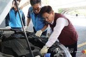 뉴스펀치 김완규 기자 | 박강수 마포구청장은 9월 21일 오전, 월드컵경기장 남문 맞은편에서 열린 자동차 무상점검 현장을 방문했다. 이번 무상 점검은 마포구의 후원 아래 서울시자동차전문정비사업조합 마포구지회가 주관해 10시부터 16시까지 진행됐으며, 추석을 앞두고 구민들의 안전한 귀성길을 지원하기 위해 마련됐다. 전문 자격증과 숙련된 기술을 갖춘 정비원 30명이 참여해 차량의 엔진 상태, 점화계통, 벨트류, 변속기, 타이어 공기압, 브레이크 패드 등 장거리 주행에 필수적인 요소들을 꼼꼼하게 점검했다. 또한 노후되거나 고장 난 전구, 와이퍼와 같은 소모품은 현장에서 즉시 무상으로 교체해 구민들로부터 큰 호응을 받았다. 박강수 구청장은 “추석 이동이 많은 시기에 구민들이 안전하게 이동하실 수 있도록 최선을 다하겠다”며 “앞으로도 구민들의 편안하고 안전한 일상을 위해 다양한 지원을 아끼지 않겠다”라고 말했다.
