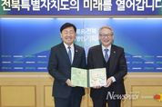 뉴스펀치 김길룡 기자 | 탄소중립을 위한 ‘탄소중립 햇빛나눔’ 사업에 전국에서 최초로 금융기관이 함께 참여한다. 이 사업은 도민이 절감한 전기·수도·가스 사용량으로 탄소포인트를 기부하면 금융기관이 동일 금액을 후원해 복지시설에 태양광을 설치하는 에너지 복지사업이다. 전북도는 1일 도청에서 전북은행, 농협은행, 전북사회복지공동모금회와 ‘탄소중립 햇빛나눔 업무협약’을 체결하고, 기후위기 취약계층을 위한 새로운 에너지 복지 모델을 선보였다. 이날 협약식에는 김관영 도지사, 오현곤 전북은행 부은행장, 김성훈 농협은행 전북본부장, 한명규 전북사회복지공동모금회장이 참석해 사업 취지와 향후 협력 방향을 공유했다. 이번 협약을 통해 전북은행과 농협은행은 전북사회복지공동모금회 탄소포인트 기부금 전용계좌에 적립된 금액과 동일한 금액을 연간 최대 1천만 원까지 매칭 후원한다. 매칭 기부금은 태양광 설비 설치 재원으로 활용되며, 이를 기반으로 2026년부터 2028년까지 3년간 9개 복지시설에 태양광 설비가 설치될 예정이다. 탄소중립포인트제는 전기·상수도·도시가스 절감을 통해 온실가스 감축 실적을 인센티브로 돌려주는 제