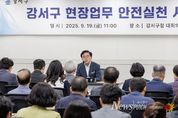 뉴스펀치 김완규 기자 | 서울 강서구는 19일 구청 대회의실에서 ‘현장업무 안전 실천 서약식’을 열고 안전사고 없는 사업장 조성을 위한 실천 의지를 다졌다. 구는 지난 18일 청소 용역업체 종사자 사망 사고가 발생함에 따라 안전한 사업현장을 조성하겠다는 결연한 의지를 다지기 위해 마련됐다. 서약식에는 청소, 공원녹지, 도로, 하수, 공공시설 등 구의 현장 업무를 처리하는 용역업체 대표자 및 관계자 90여 명이 참석했다. 이날 진 구청장을 비롯한 참석자들은 서약서에 서명하며 산업재해 예방을 위한 실천 의지를 함께 다졌다. 서약서에는 ▲강서구민과 종사자의 생명 및 안전 최우선 ▲안전보건관리체계 구축으로 안전한 사업장 조성 ▲현장 안전수칙 준수 ▲안전문화 확산을 위한 전직원 안전교육 지속 실시 등 안전보건 의무이행을 위한 실천 항목이 담겼다. 서약식에 이어 현장에서 발생할 수 있는 사례를 중심으로 산업재해 예방 교육도 진행됐다. 진 구청장은 “안타까운 사고가 발생해 구청장으로서 너무나 참담한 마음이다. 구에서는 지금의 상황을 매우 엄중하고 비상하게 인식하고 있다”며 “유사사고 재