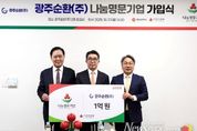 뉴스펀치 김길룡 기자 | 광주광역시는 광주순환㈜이 ‘나눔명문기업’에 동참, 27일 회사 회의실에서 가입식을 개최했다고 밝혔다. 광주순환은 22번째 가입한 지역 기업이다. ‘나눔명문기업’은 사회복지공동모금회 사랑의열매에 1억원 이상의 기부금을 5년 이내 기부하기로 약정하고, 가입 때 2000만원 이상의 기부금을 기부한 법인에게 예우를 제공하는 제도다. 이번 가입식은 기업이 지역사회를 위한 나눔활동을 지속적으로 실천하고 있음을 기념하고 격려하기 위해 마련됐다. 광주순환은 다년간 지역사회공헌 활동을 꾸준히 이어오며 기업의 사회적 책임경영을 실천해왔다. 이번 가입으로 광주순환은 광주 제22호 나눔명문기업에 이름을 올렸다. 이날 행사에는 강기정 시장을 비롯해 구제길 광주사회복지공동모금회장, 이영훈 광주순환 대표이사 등이 참석해 나눔명문기업 인증패를 전달하고 향후 협력 방안 등을 논의했다. 강기정 시장은 “지역 기업의 따뜻한 나눔 실천이 모여 광주의 복지 안전망을 더욱 촘촘히 만드는 힘이 된다”며 “광주시도 나눔문화 확산을 위해 최선을 다하겠다”고 말했다. 구제길 광주사회복지공동모금회