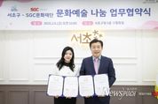 뉴스펀치 박상훈 기자 | 서울 서초구는 지난 6일 재단법인 SGC문화재단과 ‘문화예술 나눔 협약’을 체결하고 지역 기반 문화나눔 사업을 공동으로 추진해 나가기로 했다고 밝혔다. SGC문화재단은 에너지·건설·유리사업 분야를 중심으로 성장해 온 SGC그룹이 문화예술을 통한 사회공헌을 목적으로 지난 2025년 설립한 재단으로 공연·교육·문화나눔 사업을 통해 문화예술의 사회적 가치를 확산하는 데 힘쓰고 있다. 이번 협약은 서초구민을 대상으로 한 문화예술 사업을 양 기관이 함께 기획·운영함으로써, 문화소외계층의 문화 향유 기회를 확대하고 지역 내 문화예술 나눔을 활성화하기 위해 마련됐다. 양 기관은 문화예술을 매개로 한 협력 모델을 구축해 지역사회 문화복지 증진과 문화 접근성 확대에 힘을 쏟기로 뜻을 모았다. 협약에 따라 서초구는 지역 문화사업 추진 주체로서 문화예술 사업의 공동기획을 비롯해 공연장소 및 부대시설 제공, 행정적 지원과 홍보 등에 협력할 예정이다. SGC문화재단은 문화예술 콘텐츠에 대한 전문성을 바탕으로 사업 기획 전반을 총괄하고 프로그램 구성과 연주진 섭외 등 운영 전반을 맡게 된다. 또한