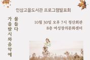 뉴스펀치 김길룡 기자 | 금산인삼고을도서관은 프로그램 수강생들의 학습 성과물에 대한 성취감 고취와 지역 주민 문화 향유 기회 제공을 위해 오는 30일 금산읍 청산회관에서 ‘가을밤, 시와 음악에 물들다’ 행사를 개최한다. 이날 도서관 독서문화프로그램 ‘시와 함께 소리 찾기’ 수강생 시 낭송 공연 및 문화예술동아리 지원사업으로 운영 중인 금산만돌린챔버 수강생 만돌린 공연 등이 개최된다. 또한, 박인숙 인문학 강사의 ‘시를 노래하다’ 특강이 펼쳐진다. 금산인삼고을도서관 ‘가을밤, 시와 음악에 물들다’ 행사에 관한 자세한 내용은 금산다락원 도서관팀에 문의하면 된다. 도서관 관계자는 “2021년 이후 만 4년 만에 개최되는 발표회를 열게 됐다”며 “그동안 프로그램 참여를 통해 기량을 익힌 수강생들의 성과를 보여주는 자리가 될 것”이라고 말했다.
