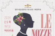 뉴스펀치 조평훈 기자 | 원주시립교향악단은 오는 2월 5일 오후 7시 30분 백운아트홀에서 제103회 기획연주회 ‘피가로의 결혼’을 개최한다. 시립교향악단은 정주영 상임지휘자의 지휘 아래, 바리톤 김영광, 소프라노 전큰별, 베이스 강동윤 등 한국예술종합학교 성악 및 예술사 전공 학생들과 협연해 오페라 ‘피가로의 결혼’을 선보인다. 피가로의 결혼은 모차르트 3대 오페라 중 하나이며, 총 4막으로 구성돼 있다. 스페인 남부 안달루시아 지방의 수도 세비야를 배경으로 계급사회에서 시민사회로 전환되는 18세기 유럽 사회의 변화를 그린 작품이다. 연주회는 전석 무료로 진행되며, 사전 예매는 원주시 통합예약플랫폼에서 접수한다.