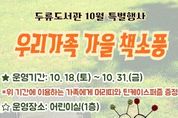 뉴스펀치 조평훈 기자 | 대구두류도서관은 10월 18일부터 31일까지 어린이실에서 선착순 40가족을 대상으로 책과 소풍 물품을 함께 대여하면 머리띠와 퍼즐을 증정하는‘우리가족 가을 책소풍’행사를 실시한다. 참여를 원하는 가족은 어린이실에 방문하여 도서관 회원증을 제시하고 책과 돗자리, 간이의자, 미니테이블, 독후활동지, 보드게임 등 소풍에 필요한 물품을 대여하고 당일 오후 5시까지 반납하면 된다. 기타 자세한 내용은 도서관 누리집 또는 어린이실로 문의하면 된다.