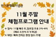 뉴스펀치 김길룡 기자 | 음성군 제8대 유엔사무총장 반기문 평화기념관에서는 관람객을 위해 11월 주말 무료 체험 프로그램을 운영한다. 해당 프로그램은 11월 1일부터 30일까지 매주 토·일요일(오후 2시~4시, 재료 소진 시 조기 마감)에 진행된다. 매회 선착순 25명을 대상으로 당일 오후 2시 현장에서 접수하며, 누구나 무료로 참여할 수 있다. 토요일에는 그림이 인쇄된 냅킨을 활용해 손거울 표면을 꾸며보는 체험인 ‘냅킨 손거울 만들기’ 프로그램을 진행한다. 일요일에는 바느질 없이 손으로 끈을 매듭지어 다양한 형태를 만드는 ‘마크라메’공예 기법을 활용해 작은 인형을 제작해 보는 체험인 ‘마크라메 걱정 인형 만들기’ 프로그램을 운영한다. 완성된 인형은 장식용 또는 감정지지 소품으로 활용할 수 있다. 장정자 평생학습과장은 “다가오는 주말에는 반기문 평화기념관에 방문해 전시 관람도 즐기고, 체험 프로그램을 통해 좋은 추억을 만들어 가시길 바란다”고 밝혔다.