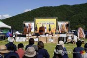 뉴스펀치 김길룡 기자 | 충북 단양군은 지난 17일 별곡생태체육공원에서 ‘농촌의 미래, 우리 힘으로’를 주제로 ‘제29회 단양군 농업인대회’를 성황리에 개최했다고 밝혔다. 이번 행사는 단양군농업인단체협의회가 주최하고, 지역 농업인의 노고를 격려하며 화합과 결속을 다지는 뜻깊은 자리로 마련됐다. 행사는 소백산터사랑 풍물단의 흥겨운 공연과 생활개선회의 라인댄스로 문을 열었으며, 개회식과 함께 농업인 화합경기가 다채롭게 펼쳐졌다. 공굴리기, 지게 지고 고무신 받기, 전략 줄다리기, 쌀가마니 들기, 노래자랑 등 세대와 지역을 아우르는 프로그램들이 진행되어 참가자들의 큰 호응을 얻었다. 이날 시상식에서는 지역 농업 발전에 기여한 농업인들에게 표창이 수여됐다. 도지사 표창에는 영춘면 엄창섭 씨가, 농업인대상은 어상천면 원혜경 씨(대상), 장성칠 씨(우수상), 김종만 씨(장려상)이 수상했다. 또 군수 표창패는 장기철 씨와 박명종 씨, 의장 표창패는 허영옥 씨와 신승각 씨에게 전달됐으며, 이외에도 농촌지도자 중앙연합회상과 농협중앙회상이 농업인들에게 수여됐다. 김문근 단양군수는