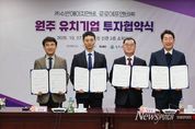 뉴스펀치 김길룡 기자 | 강원특별자치도는 10월 27일 강원특별자치도청에서 원주시, ㈜수반에이치앤비, 로로에프엔비㈜ 2개 기업과 총 396억 원 규모의 투자협약을 체결했다. 이번 협약으로 두 기업은 총 347명의 신규 일자리를 창출할 계획이다. ㈜수반에이치앤비는 262억 원을 투자하여 144명을 신규 채용하고, 로로에프엔비㈜는 134억 원을 투자해 203명을 신규 고용할 계획이다. 두 기업은 원주시 일원에 공장을 신축하여 2027년 연내에 투자를 완료할 계획이다. ㈜수반에이치앤비는 올해 10월 새로 설립된 화장품 제조기업으로, 대규모 투자를 통해 생산 라인을 구축하고 다양한 제형의 화장품 및 건강기능식품 OEM 시장을 집중 공략할 예정이다. 이를 위해 원주시 기업도시 내 약 9,145㎡(약 2,766평) 규모의 공장을 신축하고, CGMP 등 제조품질관리 인증을 획득할 계획이다. 로로에프엔비㈜는 기존 원주 부론면의 공장 외에 문막반계일반산업단지 내 공장을 신설한다. 이 기업은 올해 5월 GS25 편의점 내 빙과류 카테고리에서 일 최대 매출을 기록한 ‘아이스 브륄레’ 등 뛰어난 자체 브랜드를 보유하고