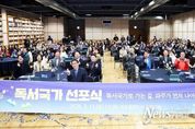 뉴스펀치 박상훈 기자 | 파주시는 지난 11일 파주출판도시 지혜의숲 대회의실에서 시민과 도서관·교육·출판 관계자 등 200여 명이 참석한 가운데 ‘파주시 독서국가 선포식’을 개최했다. 이번 선포식은 지난 1월 국회의원회관에서 열린 ‘독서국가 선포식 및 독서국가 추진위원회 출범식’의 취지에 발맞춰 마련된 행사로, 인공지능(AI) 시대에 대응하는 독서교육의 국가적 전환 움직임에 적극 동참하기 위해 기획됐다. 특히 대한민국 출판문화산업을 선도해온 파주출판도시에서 개최되어 ‘책의 도시’파주의 위상을 다시 한번 확인하는 계기가 됐다. 이날 행사에서는 ▲전 세대 독서문화 확산 ▲학교·도서관·가정·지역사회가 함께하는 지속 가능한 독서 생태계 구축 ▲출판 및 문화산업 존중과 지식·콘텐츠 선순환 기반 강화 ▲경청과 토론이 살아있는 시민사회 구현 ▲독서를 통한 미래 준비 등의 내용을 담은 선언문이 발표됐다. 이어 진행된 대형 붓글씨 시연은 독서국가를 향한 파주의 의지를 상징적으로 표현하며 참석자들의 큰 박수를 받았다. 행사장에는 선언의 의미를 되새기려는 시민들의 발걸음이 이어졌고, 독서에 대한 높은 관심과 공감대를 확인할 수 있