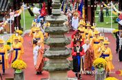 뉴스펀치 김길룡 기자 | 화성특례시는 10월 18일, 용주사(주지 성효 스님) 일원에서 민족의 평화와 안녕을 기원하는 불교 전통의례 ‘불기 2569년 수륙대재’를 봉행했다고 밝혔다. 수륙대재는 물과 육지에서 떠도는 외로운 무주고혼들을 위로하고 구제하기 위해 부처님의 가르침을 설하고 음식을 공양하는 불교의식이다. 용주사는 고려시대부터 이어져온 이 전통문화를 현대에 되살리고 시민들의 문화 향유 기회를 확대하고자 2017년부터 수륙대재를 정기적으로 봉행해오고 있다. 특히 올해 용주사 수륙대재는 역사성을 한층 더 부각시켰다는 평을 받았다. 영가들을 맞는 시련의식을 시작으로 옛 수륙재가 그러했듯 왕의 교지와 하사품을 전달하는 역할을 화성특례시장(정명근 시장)이 진행하여 전통문화 고증에 신경을 쏟은 모습이였다. 그 후로는 영가를 대접하고 깨끗하게 목욕시키는 대령, 관욕 의식, 수륙재 공간을 정돈하고 설행 공간을 정하는 사자단과 오로단, 상단과 중단, 하단의식, 등 불교 전통 의례의 정수를 보여주었다. 정명근 화성시장은 축사에서“정조대왕의 효심과 애민 정신이 녹아있는 용주사에서 진행되는 수륙대재의 의미와 가치가