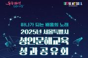뉴스펀치 김완규 기자 | 서울시평생교육진흥원은 ‘하나가 되는 배움의 노래’를 주제로 10일 13시부터 17시까지 서울시청 본청 8층 다목적홀에서 ‘2025년 서울시 성인문해교육 성과공유회’를 개최했다. 이번 행사는 성인 문해학습자들이 한 해 동안의 학습 여정에서 얻은 경험과 결실을 나누고, 새로운 배움에 대한 열망을 확인하는 장으로 마련됐다. 이번 행사는 ▲올해로 3회차를 맞은 ‘디지털 문해 골든벨’과 함께 ▲문해 음악 공연 ‘배움의 플레이리스트’ ▲서울지역 문해교육 시화전 시상식 ▲디지털 기기 체험 부스 ▲시화전 수상작 전시 ▲문해교육 체험 부스 등 문해학습자의 성과를 공유하고 학습 의욕을 높이는 다채로운 프로그램들로 구성됐다. 행사의 주요 프로그램으로 ‘디지털 문해 골든벨’이 진행됐다. 서울 지역 문해교육기관 학습자들이 참여해 기초 문해력 문제뿐 아니라 무대에 배치된 디지털 기기를 실제 활용하는 문제에 도전했다. ‘디지털 문해 골든벨’은 전반부는 기초 수준의 문해교육 문제들을 함께 풀며 서로를 격려하는 시간으로, 후반부는 무대에 디지털 기기를 실제로 배치하여 문해학습자의 디지털 기기 활용 역량을 확인하는 시간으로 구성됐