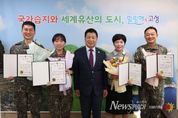 뉴스펀치 김길룡 기자 | 고성군은 10월 29일 군수실에서 ‘2025년 비상대비 훈련(충무훈련·을지연습)’에 적극적으로 참여해 모범적으로 임무를 수행한 유공자 4명에게 표창장을 수여하고 노고를 격려했다. 이날 표창 대상자는 제8358부대 제2대대 고성군지역대 기동대장 김구민, 작전장교 유동우, 급양관리관 정수정, 고성읍 여성민방위기동대장 차영란 등 4명으로, 훈련 기간 맡은 임무를 성실히 수행하여 지역 통합방위 태세 확립에 기여한 공로를 인정받았다. 올해 비상대비 훈련은 국가 비상사태 발생 시 지방자치단체, 유관기관의 위기 대응 능력을 종합적으로 점검하기 위해 충무훈련 및 을지연습과 연계하여 실시됐다. 이번 훈련을 통해 고성군은 충무계획을 검증하고 유관기관 합동 대응체계를 점검함으로써 지역 방위 역량을 한층 강화했다. 이상근 고성군수는 수여식에서 “비상대비 훈련에 헌신적으로 참여해 주신 유공자 여러분께 깊이 감사드린다”라며, “이번 표창이 지역 안보의 중요성을 되새기고, 군민의 생명과 안전을 지키는 데 더욱 힘을 모으는 계기가 되기를 바란다”라고 말했다. 한편, 고성군은 앞으로도 유관기