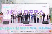 뉴스펀치 김종율 기자 | 문경시는 15일 문경시민운동장에서 안도 미츠지 아시아소프트테니스연맹(ASTF) 회장을 비롯한 국내외 주요 인사, 선수단, 시민 등 4천여 명이 참여한 가운데 제9회 문경아시아소프트테니스선수권대회의 성대한 막을 올렸다. 행사는 문경시립청소년무용단의 식전공연으로 시작해 선수단 입장, 개회 선언, 환영사, 축사, 선수·심판 선서 등 본식이 진행됐고, 이어 황민호, 박군, 마이진의 축하공연이 펼쳐지며 선수단과 시민들은 뜨거운 호응으로 개회식 분위기를 한층 고조시켰다. 이번 개회식을 시작으로 본격적인 경기는 9월 16일부터 21일까지 문경국제소프트테니스장에서 진행되며, 아시아 25개국 300여 명의 선수들이 개인전, 복식전, 단체전 등 다양한 종목에서 열띤 경기를 펼칠 예정이다. 신현국 문경시장(공동조직위원장)은 “문경에서 아시아 25개국 선수들이 하나 되어 기량을 겨루게 된 것을 매우 뜻깊게 생각한다”며 “WE ARE ONE, 소프트테니스는 하나라는 정신 아래 이번 대회가 화합과 우정을 다지는 계기가 되기를 바란다”고 말했다.