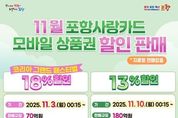 뉴스펀치 김길룡 기자 | 포항시는 코리아 그랜드 페스티벌 기간 지역 내 소비 붐업을 위해 내달 3일부터 카드형·모바일 포항사랑상품권을 70억 원 규모로 18% 할인판매를 시작한다. 코리아 그랜드 페스티벌은 이달 29일부터 내달 9일까지 12일간 개최되는 국가 차원의 통합 할인 행사로 제조·유통과 전통시장, 소상공인 업계가 참여한다. 이번 포항사랑카드 특별할인 판매는 기존 할인 혜택 13%에 5%를 추가해 총 18% 할인 혜택이 적용되며, 국비를 추가 확보해 코리아 그랜드 페스티벌과 연계로 진행하는 행사로 지역 내 소비 활성화에 기여할 것으로 기대하고 있다. 또한 시는 내달 3일부터 시작하는 포항사랑카드 70억 원 규모의 18% 할인판매에 이어 내달 10일부터는 180억 원 규모로 13% 할인판매 등 11월에 총 250억 원을 발행해 실질적인 소비 촉진으로 지역 상권 회복과 지역경제 선순환을 이어가겠다는 방침이다. 이번 포항사랑카드 18% 특별 할인판매의 개인 구매 한도는 10만 원이며, 보유 한도는 100만 원이다. 오는 11월 3일 0시 15분부터 모바일 앱(iM샵)에서 충전할 수 있으며, 104