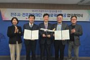 뉴스펀치 정홍균 기자 | 대한민국 대표 영화도시인 전주시가 글로벌 영화영상산업 수도로 도약하기 위해 세계적인 영상 제작 인프라를 보유한 국내·외 기업들과 손을 맞잡았다. 시와 웨스트월드(대표 손승현), 쿠뮤필름스튜디오는 19일 시청 3층 소회의실에서 우범기 전주시장과 손승현 웨스트월드 대표, 양수연 쿠뮤필름스튜디오 본부장 등이 참석한 가운데 ‘전주시 영화영상산업 발전 및 투자를 위한 양해각서(MOU)’를 체결했다. 이번 협약은 시가 추진 중인 ‘글로벌 영화영상산업 수도’ 조성의 핵심 거점을 마련하고, 국내외 유수 기업의 기술력과 네트워크를 전주에 이식하기 위해 추진됐다. 이 자리에서 3개 기관은 △쿠뮤필름스튜디오 전주시 투자 확정 △웨스트월드 전주 지사 설립 △영화·영상 등 콘텐츠 기업에 대한 투자 활성화에 적극 협력하기로 약속했다. 협약에 참여한 웨스트월드는 ‘오징어 게임’, ‘좀비딸’, ‘다 이루어질 지니’와 같은 글로벌 히트작의 시각효과(VFX) 제작에 참여한 국내 최고의 기술력을 보유한 기업이다. 이 기업은 특히 넷플릭스와 기술 파트너십을 체결할 만큼 독보적인 비주얼 퀄리티를 자랑한다. &n