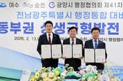 뉴스펀치 최영남 기자 | 오는 7월 전남광주특별시 출범이 예고된 가운데, 여수‧순천‧광양시 행정협의회(이하 협의회)가 이를 전남 동부권 재도약의 기회로 만들기 위한 협력에 나섰다. 13일 여수시에 따르면, 협의회는 이날 국립순천대학교 우석홀에서 제41차 정기회의를 개최하고 행정통합이라는 거대한 변화의 흐름에서 전남 동부권의 밝은 미래를 담보하기 위한 공동건의 3건(여수시 발의 2건)을 공식 의결했다. 이번 건의는 국가 기간산업의 심장부인 여수‧순천‧광양 지역이 전남광주특별시의 핵심 축으로 기능하기 위한 법적‧제도적 장치를 특별법에 마련해야 한다는 공감대에 따른 것이다. 여수‧순천‧광양시장은 이날 ‘전남 동부권 상생균형발전과 산업대전환’을 위한 행‧재정 지원 근거와 전남광주특별시 3개 청사의 기능별 본부제 운영의 특별법 반영, ‘KTX-SRT 통합에 따른 전라선 좌석 확대 공급’을 정부 부처 등에 건의했다. 협의회 관계자는 “이번 공동건의는 전남광주 행정통합을 전남 동부권 산업 경쟁력 극대화와 지역 소멸 위기 극복의 전환점으로 삼기 위함”이라며 “특별법 및 하위법령 제정과 정책 수립 과정에 반영될 수