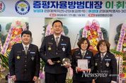 뉴스펀치 이현승 기자 | 충북 증평군자율방범대장 이·취임식이 17일 보궁컨벤션에서 열렸다. 이번 행사는 지역사회 안전을 위해 헌신해 온 자율방범대의 활동을 격려하고, 이임 대장과 우수 대원의 공로를 기리는 한편, 대장 이·취임을 계기로 조직의 재정비와 도약을 다짐하기 위해 마련됐다. 행사에는 이재영 군수를 비롯해 조윤성 군의장, 군의원, 도의원 등 지역 주요 인사와 자율방범대원 등 관계자들이 참석했다. 이·취임식에서는 제28대 박지선(34) 남성대장과 제29대 박영자(60) 여성대장이 이임했으며, 지역 치안과 공동체 안전을 위해 헌신해 온 공로를 인정받아 감사패를 받았다. 이어 제29대 김현석(34) 남성대장과 제30대 연명자(51) 여성대장이 새롭게 취임하며 자율방범대의 새로운 출발을 알렸다. 아울러 자율방범 활동에 성실히 참여하며 타의 모범이 된 대원들에게 우수대원 표창패가 수여돼, 대원들의 사기와 자긍심을 높이는 시간도 가졌다. 이날 취임 대장들은 “지역 주민들이 안심하고 생활할 수 있도록 현장 중심의 자율방범 활동을 강화하고, 대원 간 화합과 협력을 바탕으로 안전한