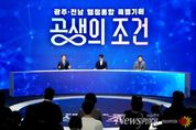 뉴스펀치 김용희 기자 | 광주광역시와 전라남도는 13일 순천대학교 우석홀에서 ‘광주·전남 행정통합 동부권 타운홀미팅’을 열고 열띤 공개 토론을 진행했다. 행정통합에 대해 동부권 시도민의 목소리를 직접 듣기 위한 자리로, 강기정 시장과 김영록 지사가 동부권 2040청년 패널 100여명과 자치행정, 교육, 산업, 복지, 농어촌 등 다양한 주제에 대해 지역의 미래를 묻고 답했다. 이번 행사는 방송 3사가 공동기획한 시민 참여형 토론 프로그램 마지막 일정으로, KBS 광주방송총국이 주관했다. 조우종 아나운서가 진행을 맡은 이번 타운홀미팅은 17~18일 이틀간 방송됐다. 강기정 시장은 이날 정치·자치행정 분야와 교육·문화예술 분야 행정통합 비전을 발표했다. 강 시장은 “광주전남 행정통합은 청년과 인재가 지역을 떠나지 않아도 되는 기반을 만들고, 광주와 전남이 하나의 생활·경제권으로 성장하기 위한 선택이다”며 “통합특별시 출범에 따른 정부의 재정 지원은 위기 산업을 회복하고 미래 산업을 육성해 양질의 일자리를 창출하는 데 쓰인다. 특히 AI영재고와 Arm 스쿨, GCC 사관학교 등 교육 인프라를 통해 광주·전남에서 미래