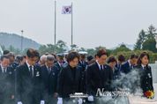 뉴스펀치 김용희 기자 | 이재명 대통령은 27일 "대결과 긴장이 감돌던 서해의 과거를 끝내고, 공동 성장과 공동 번영의 새 역사를 써 내려가는 일에 온 힘을 다하겠다"고 밝혔다. 이 대통령은 이날 오전 국립대전현충원에서 열린 '제11회 서해수호의 날 기념식' 기념사를 통해 "생사의 갈림길에서 보여준 불굴의 의지와 전우애가 대한민국 국군 장병들의 몸과 마음에 깃들어, 오늘의 대한민국을 수호하고 있다"며 이 같이 말했다. 이 대통령은 "고귀한 희생을 마다하지 않았던 55인의 서해 수호 영웅들에게 머리 숙여 깊은 경의와 추모의 마음을 전한다"며 "사랑하는 이를 가슴에 묻고 긴 슬픔의 세월을 견뎌오신 유가족 여러분에게 진심 어린 위로의 말씀을 드린다"고 밝혔다. 이어 "국민주권정부는 여러분을 결코 외롭게 두지 않겠다"며 "반드시 기억하고, 기록하고, 합당하게 예우하겠다"고 말했다. 이 대통령은 "전쟁의 폐허를 딛고 일어선 우리 대한민국의 역사에서 '공짜로 누린 봄'은 단 하루도 없었고, '저절로 주어진 평화'는 단 한 순간도 없었다"며 "서해는 그 사실을 가장 뚜렷하게 증명하는 역사적 공간"이라고 말했다.