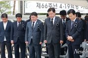 뉴스펀치 박세훈 기자 | 경상남도는 제66주년 4·19혁명 기념일을 맞아 19일 오전 창원시 마산회원구 국립 3·15민주묘지를 찾아 민주주의 수호를 위해 헌신한 영령들의 숭고한 정신을 기렸다. 이날 참배에는 박완수 도지사를 비롯해 최학범 경남도의회 의장, 박종훈 경상남도교육감, 김상우 경남동부보훈지청장 및 4·19혁명 관련 단체 대표와 유가족 등이 참석해 민주 영웅들의 넋을 위로했다. 참배는 박완수 도지사가 참석자를 대표해 민주묘역 현충탑 앞에 헌화와 분향을 하는 것으로 시작됐다. 이어 참석자 전원은 함께 묵념하며 민주주의를 향한 4·19혁명의 의의를 되새기는 시간을 가졌다. 박 지사는 참배 후 방명록에 “정권독재와 부정선거에 항거했던 4·19 정신을 이어받아 경남 발전에 힘쓰겠습니다”라고 적으며 민주주의 가치 계승을 통한 도정 발전의 의지를 기록했다. 이어 박 지사는 행사에 참석한 4·19혁명 관련 단체장 및 유가족들과 인사를 나누며 감사의 뜻을 전했다. 박 지사는 격려의 자리에서 “오늘날 대한민국 민주주의의 뿌리인 4·19혁명의 정신은 우리 경남의 자부심”이라며 “유공자와 유족들의 희생이 헛되지
