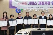 뉴스펀치 김길룡 기자 | 광주 동구는 지난 23일 구청에서 동구지역자활센터 등 11개 서비스 제공기관과 업무협약을 체결하고, 2026년 ‘동구형 통합돌봄’ 사업을 본격 추진한다고 밝혔다. 이번 협약에는 ▲광주동구지역자활센터 ▲광주광역시 안심돌봄센터 ▲광주재가노인복지협회 ▲(사)한국노인장기요양기관협회 광주지부 ▲광주의료복지사회적협동조합 ▲(사)대한물리치료사협회 광주광역시회 ▲(사)대한작업치료사협회 광주광역시·전라남도회 ▲(사)대한치과위생사협회 광주·전남회 ▲집수리공동체 ▲예술유통협동조합 ▲사회복지법인 영화복지회 등 총 11개 기관이 참여했다. 이날 협약에 따라 각 기관은 통합돌봄 서비스 제공기관으로서 역할과 책임을 바탕으로, ‘광주다움 통합돌봄’ 7대 핵심 서비스를 공동으로 수행하게 된다. 주요 서비스는 ▲일상생활 지원 ▲식사 지원 ▲병원·외출 동행 ▲건강관리 ▲안전 확인 ▲주거 편의 지원 ▲일시 보호 등으로, 돌봄이 필요한 주민들이 지역사회 안에서 필요한 지원을 지속적으로 제공받을 수 있도록 설계됐다. 동구는 이번 협약 기관들과 함께 동구 특화사업인 ‘들랑날랑 커뮤니티센터’ 운영에도 힘을 모을 계획