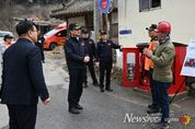 뉴스펀치 강길수 기자 | 구례소방서는 27일 최민철 전남소방본부장이 방문해 산림 인접 지역에 설치된 비상소화장치 운영 실태를 점검하고, 건조기 산불 예방을 위한 '선제적 예비주수'의 중요성을 주문했다고 밝혔다. 이날 최 본부장은 구례군 산동면 일원의 산림 인접 마을 비상소화장치함을 직접 찾아 장비 관리 상태와 즉시 사용 가능 여부를 면밀히 살폈다. 이 자리에서 건조 특보가 발효되는 등 산불 위험이 커질 때, 화재 발생 전 미리 주변에 물을 뿌려 연소 확대를 막는 '선제적 예비주수' 활동이 대형 화재를 막는 핵심 방어선임을 거듭 강조했다. 이어 소방서에서 주요 업무를 보고받은 최 본부장은 산림과 인접한 주거지 및 전통 사찰 등 화재 취약 대상에 대한 예방 대책을 심도 있게 논의했다. 특히, 평상시 건조한 날씨에는 주민들이 비상소화장치로 마을 주변에 미리 물을 뿌리도록 안내하되, 실제 산불 발생 및 확산 시에는 무리한 진압을 시도하기보다 신속한 대피와 119 신고가 최우선임을 명확히 교육할 것을 주문했다. 최민철 전남소방본부장은 “산림과 주거지역이 맞닿아 있는 구례지역 특성상, 비상소화장치를 활용한 선제적 예비주수