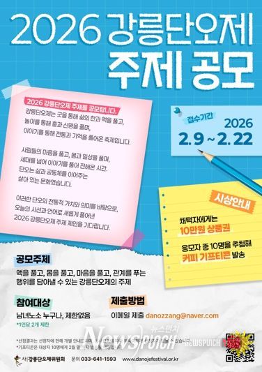 뉴스펀치 조평훈 기자 | (사)강릉단오제위원회는 2026 강릉단오제 주제 공모를 오는 2월 9일부터 2월 22일까지 진행한다.