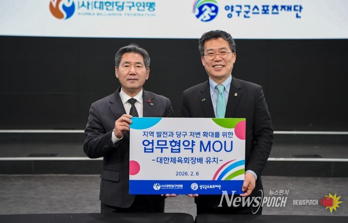 서흥원 양구군스포츠재단 이사장은 “이번 협약을 통해 양구군이 전국 규모 당구대회의 중심지로 자리 잡는 계기가 될 것으로 기대한다”며 “안정적인 대회 운영과 체계적인 지원으로 선수와 관람객 모두가 만족하는 스포츠 환경을 조성해 지역에 실질적인 활력을 더하겠다”고 말했다.