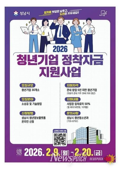뉴스펀치 박상훈 기자 | 성남시는 청년 창업기업의 안정적인 정착을 돕기 위해 사업장 임차료의 50%를 지원한다고 9일 밝혔다.