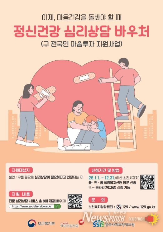 뉴스펀치 이현승 기자 | 공주시는 시민들의 마음건강을 돌보고 정서적 어려움을 조기에 발견해 대응하기 위해 전문 심리상담 서비스를 제공하는 ‘정신건강 심리상담 바우처사업’을 2026년에도 본격 추진한다고 밝혔다.