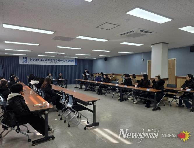 뉴스펀치 박상훈 기자 | 권선구 권선2동 주민자치회는 지난 7일, 주민자치센터 프로그램 강사 및 수강생 대표 등 40명과 함께 주민자치 활성화를 위한 간담회를 실시했다.
