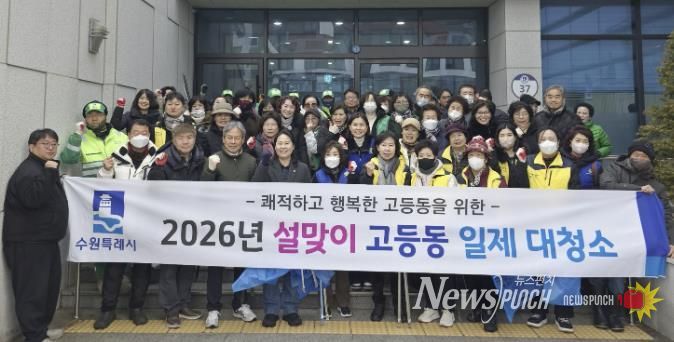 뉴스펀치 박상훈 기자 | 수원시 팔달구 고등동은 지난 6일, 설 명절을 맞아 고등동 관내에서 주민과 직원이 함께하는 ‘설맞이 대청소’를 실시했다.