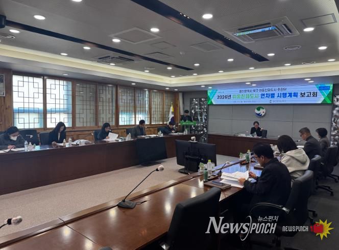 뉴스펀치 김윤걸 기자 | 울산 북구는 9일 구청 상황실에서 아동친화도시 추진단 회의를 열어 2026년 연차별 시행계획(안)을 공유하고 분야별 협업 방안을 논의했다.