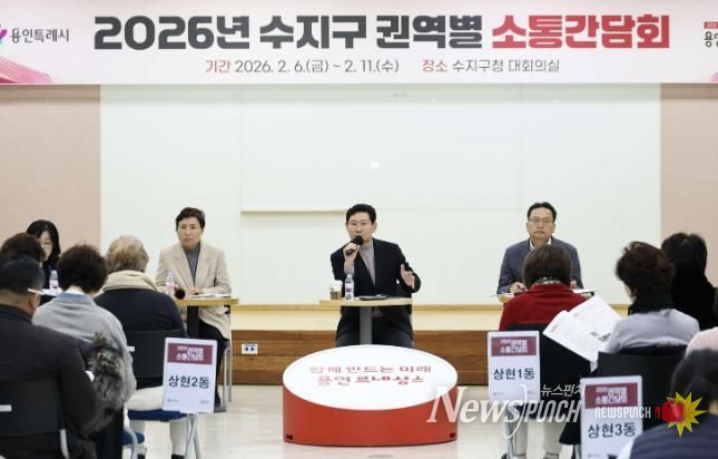 뉴스펀치 박상훈 기자 | 이상일 시장은 9일 수지구청 대회의실에서 오전·오후로 나눠 상현1·2·3동과 신봉·성복동 주민들을 대상으로 권역별 소통간담회를 열고, 주민 대표 80여 명과 지역 현안에 대해 의견을 나눴다.
