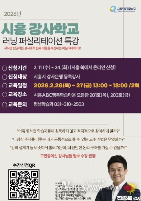 뉴스펀치 박상훈 기자 | 시흥시는 오는 2월 26일부터 27일까지 이틀간 시흥ABC행복학습타운에서 강사들의 교수법 혁신을 위한 ‘2026년 시흥 강사학교: 러닝 퍼실리테이션 특강’을 운영한다.