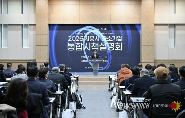 뉴스펀치 박상훈 기자 | 시흥시는 지난 2월 9일 시흥비즈니스센터 2층 컨벤션홀에서 ‘2026년 시흥시 중소기업 통합시책설명회’를 열었다.