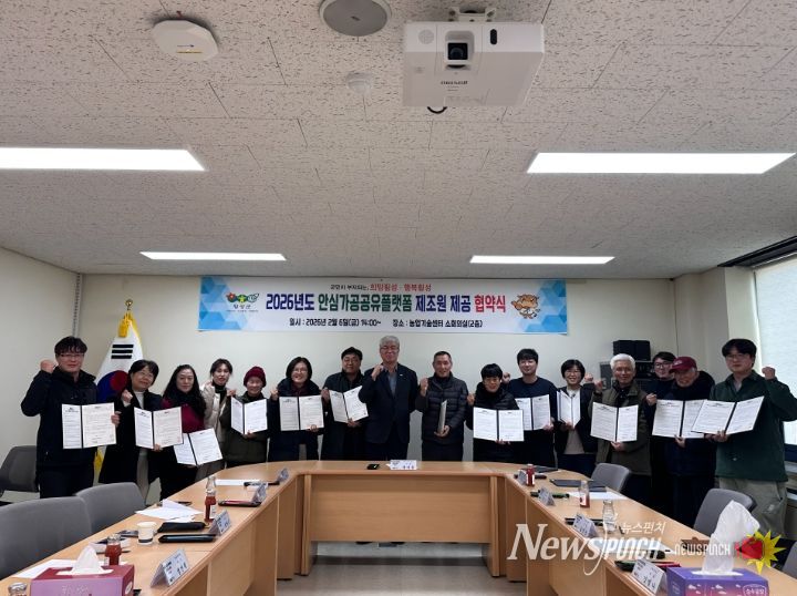 뉴스펀치 조평훈 기자 | 횡성군농업기술센터는 농업인의 가공 창업 장벽을 낮추고 지역 농산물의 부가가치를 높이기 위해, 지난 6일 오후 2시 센터 내에서 ‘2026년 안심가공공유플랫폼 제조원 제공 협약식’을 개최했다.
